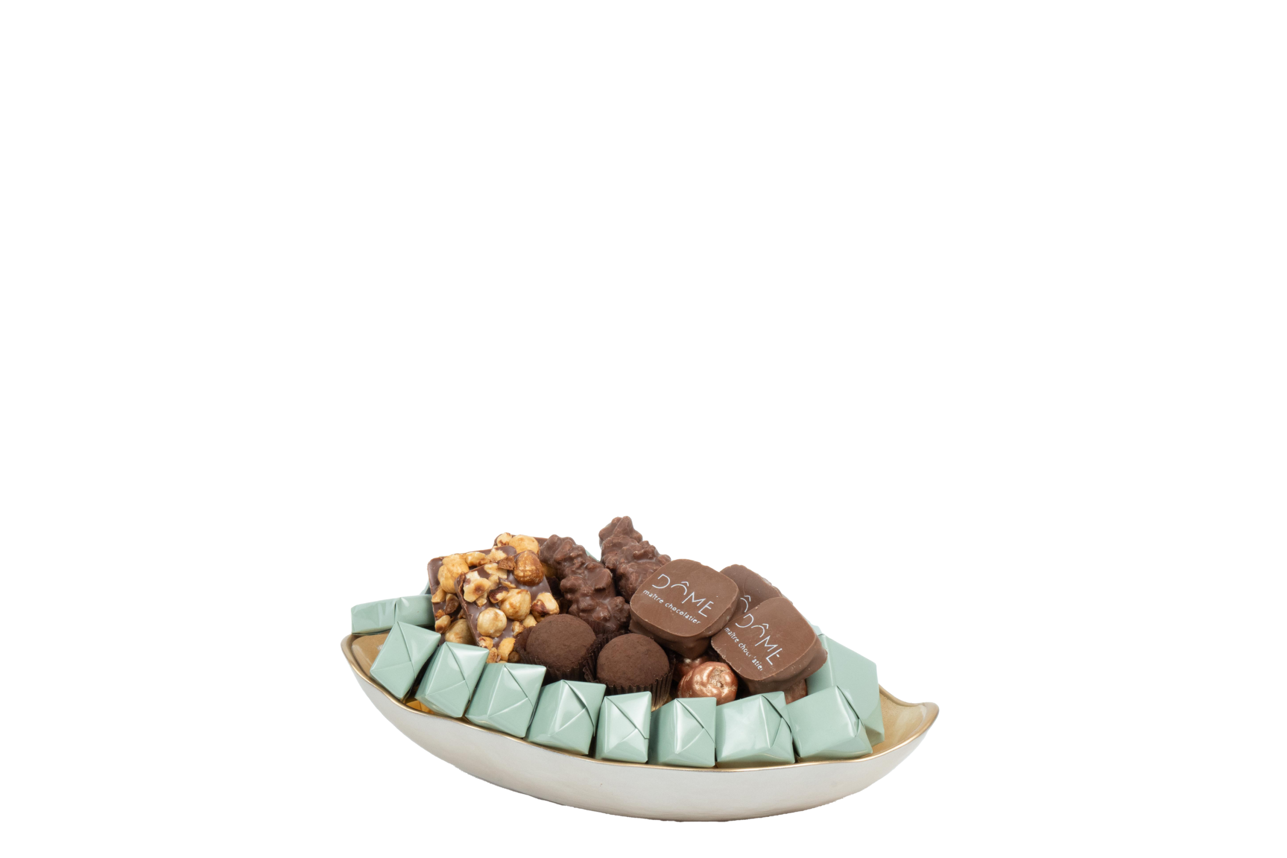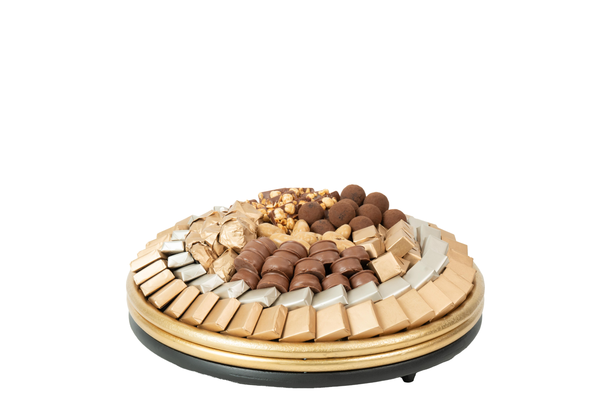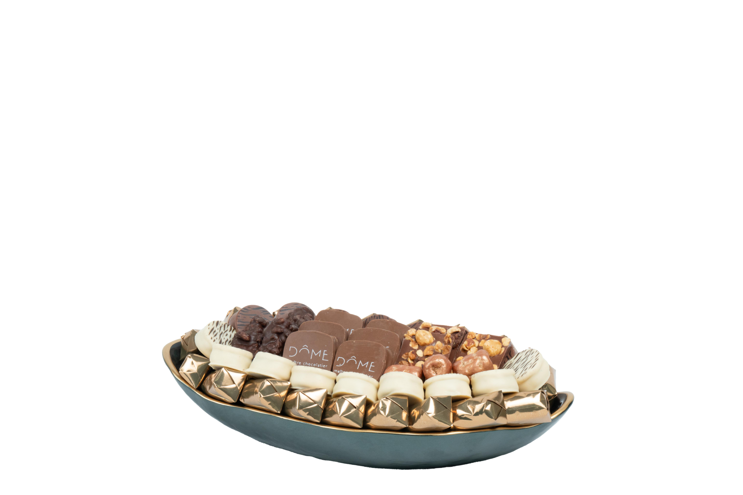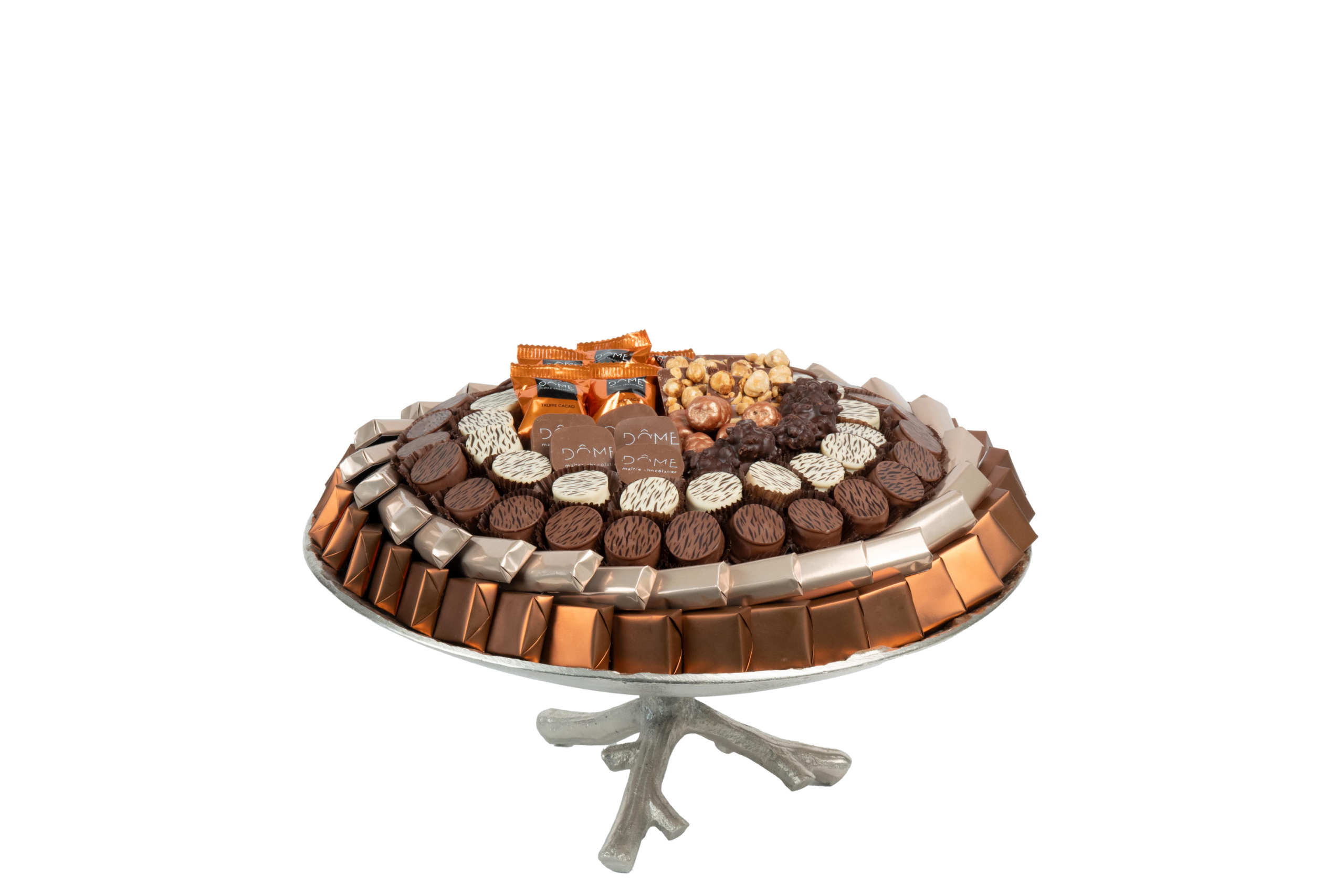 Plateau en métal garni de chocolat