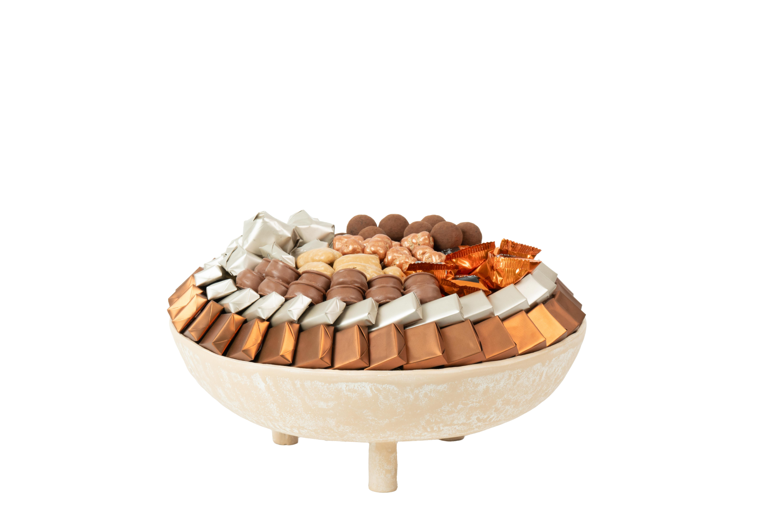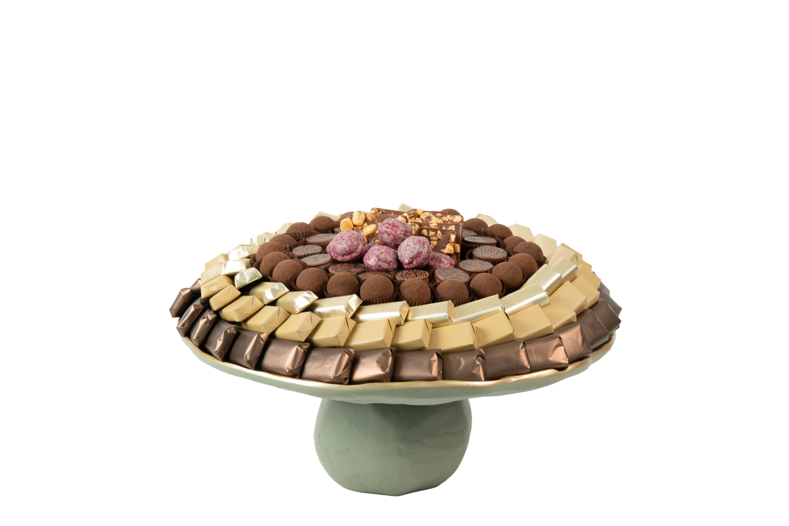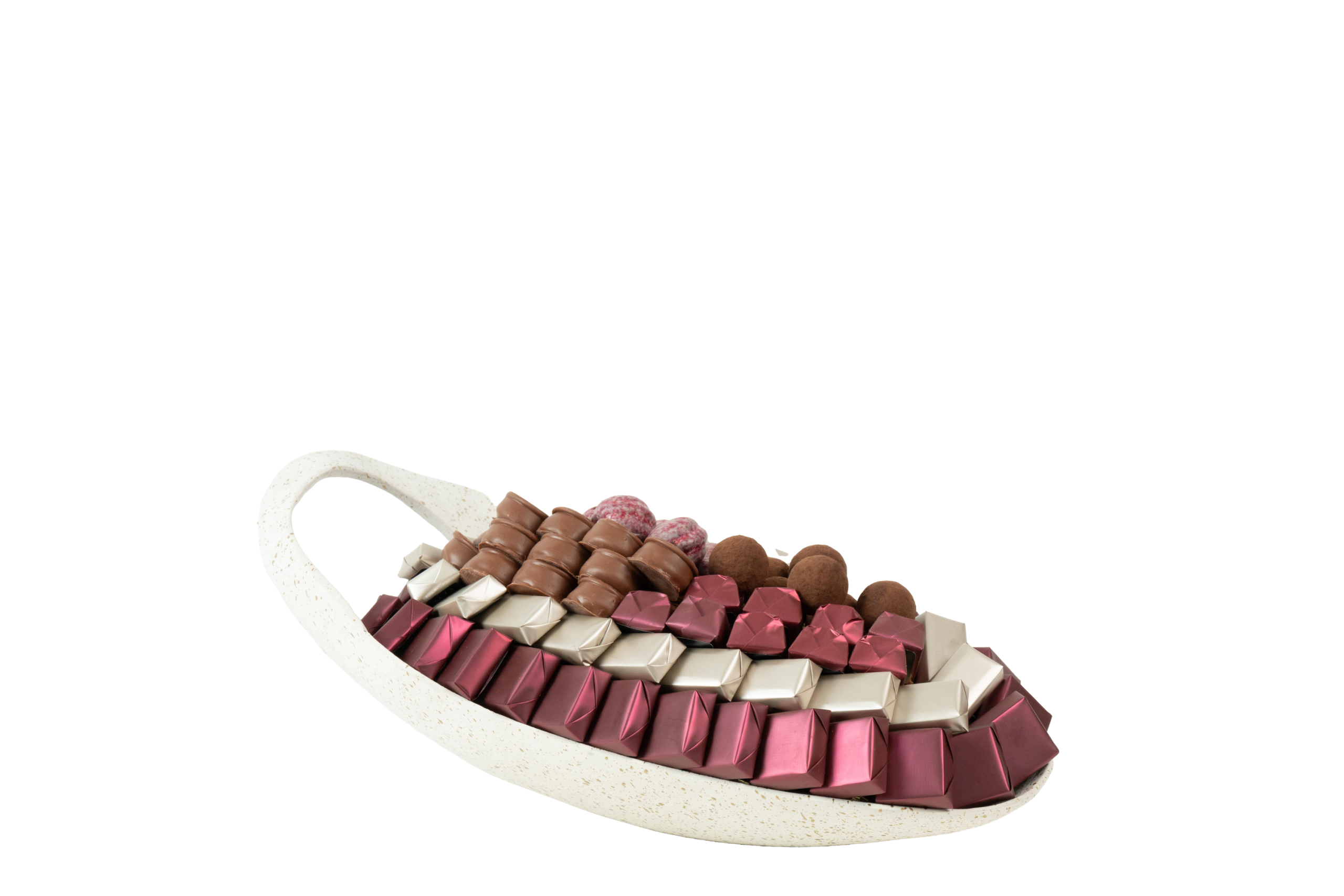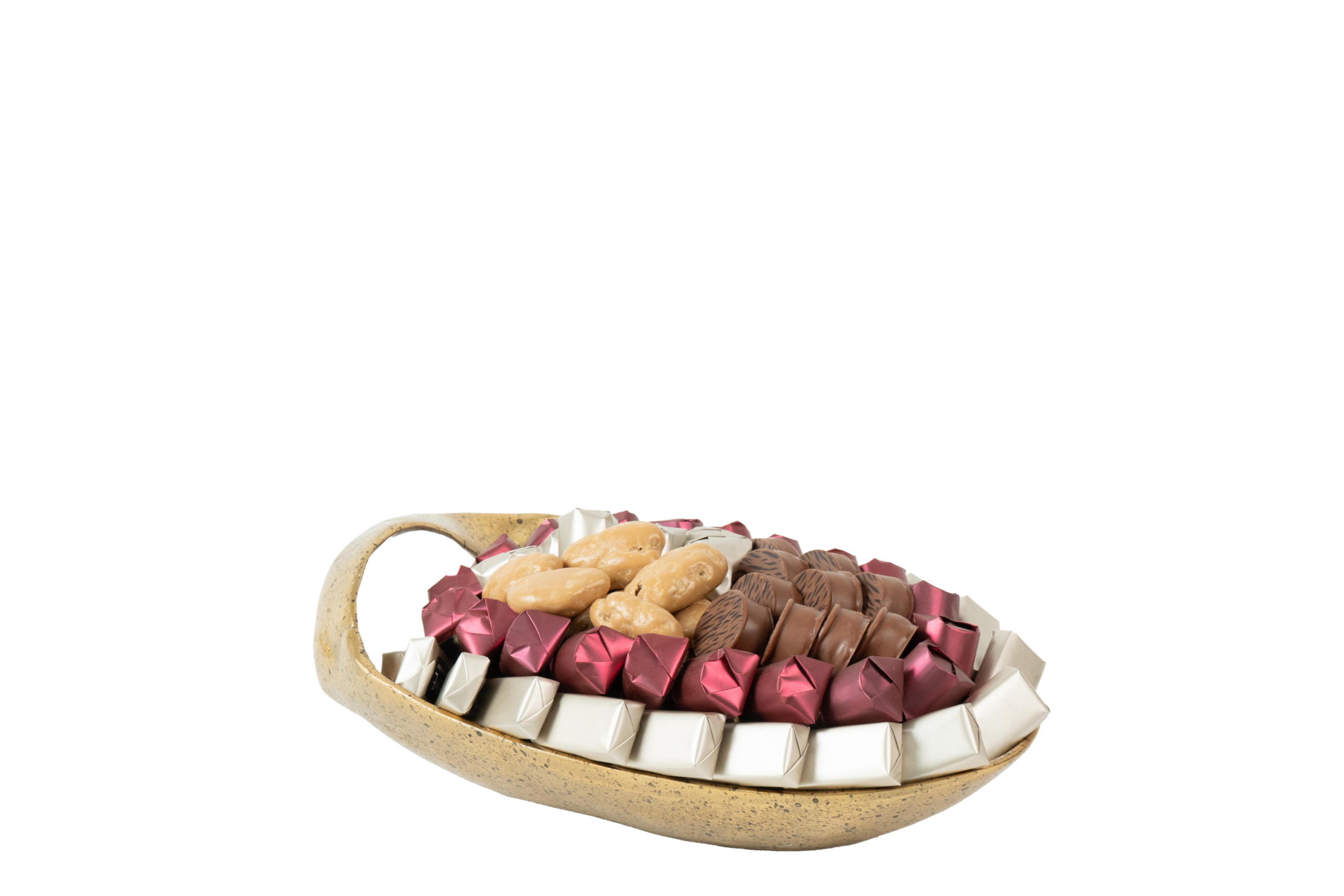 Plateau en métal garni de chocolat