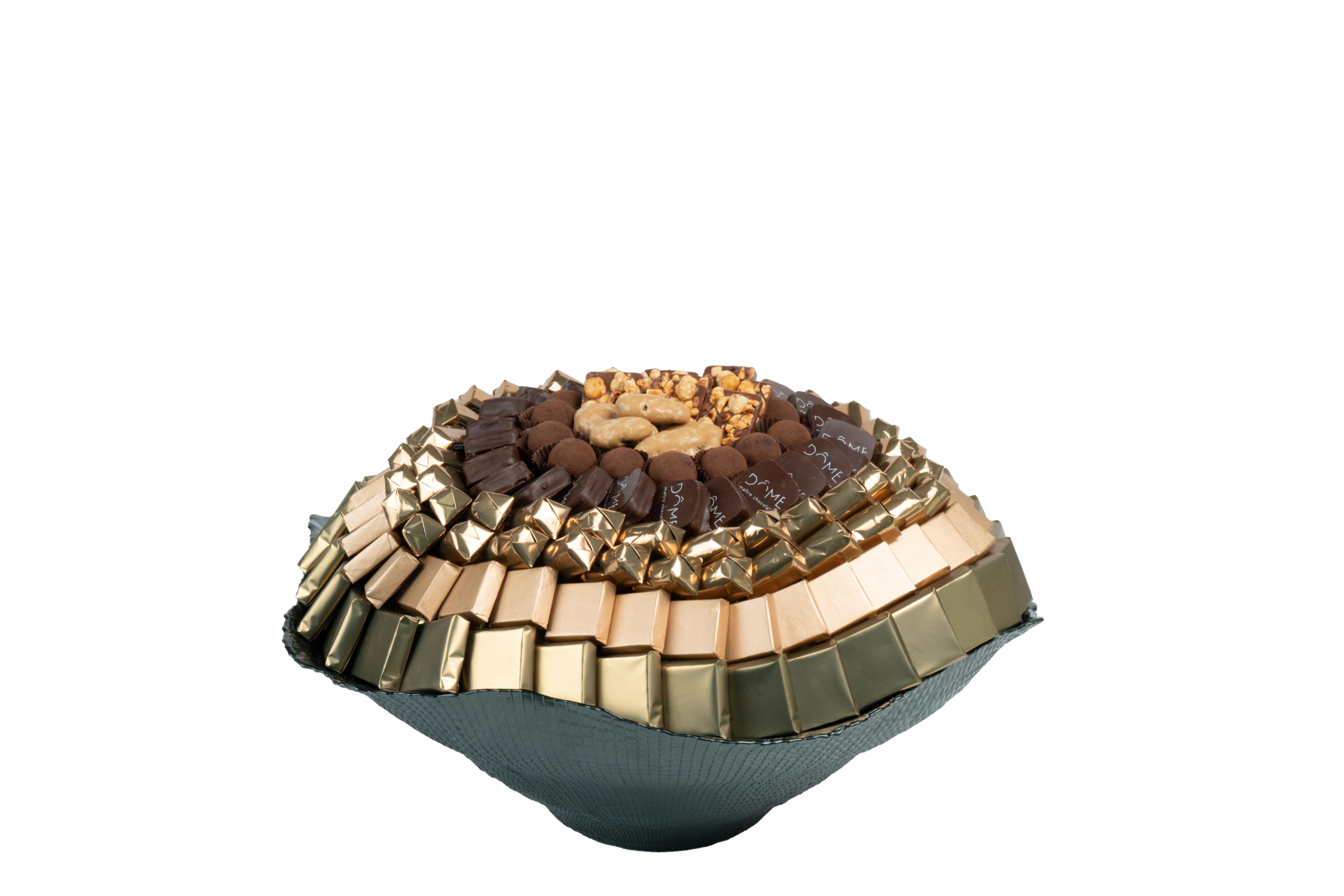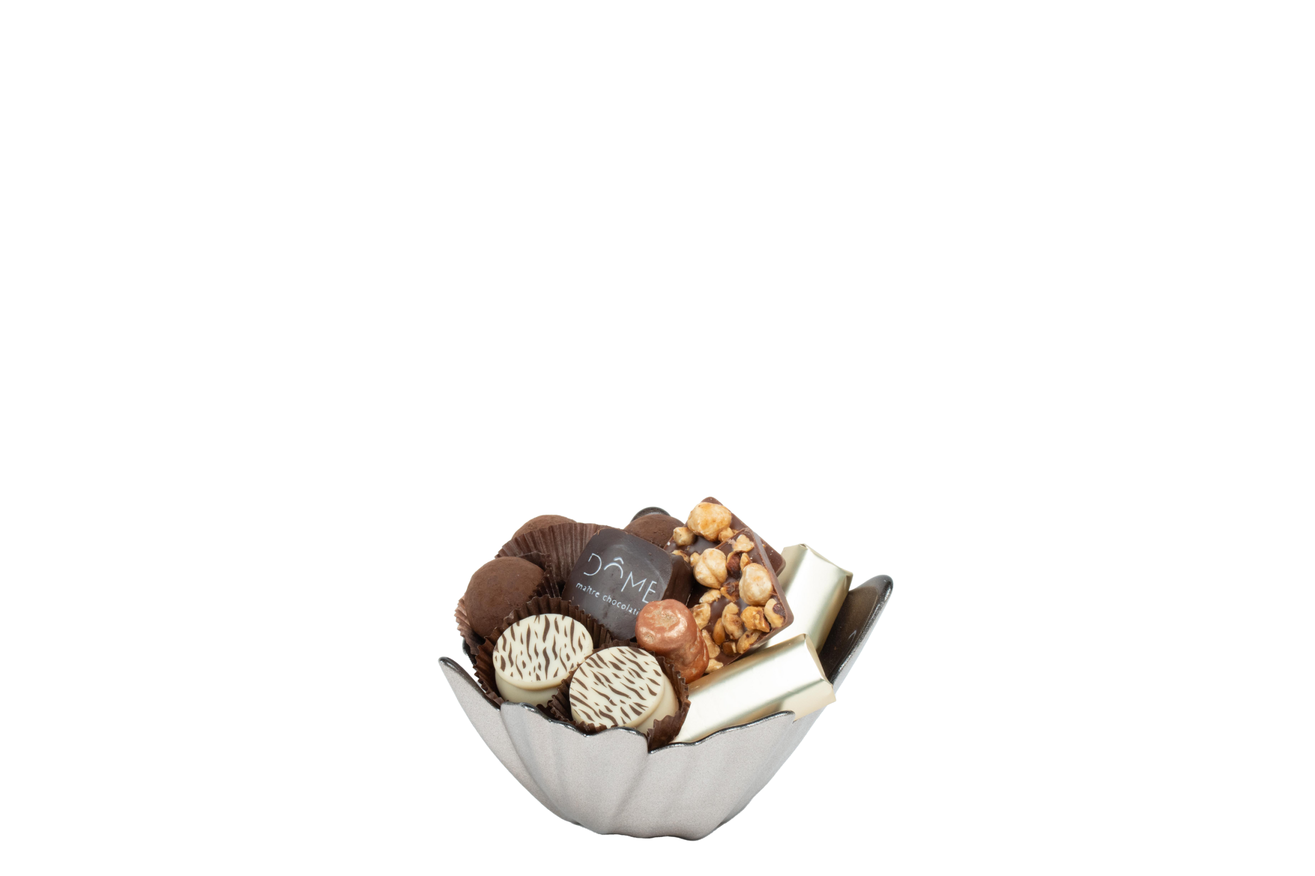 Coupe en métal garnie de chocolat
